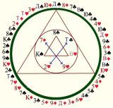 «Берегитесь лжепророков, которые приходят к вам в овечьей одежде, а внутри суть волки хищные: по плодам их узнаете их. Собирают ли с терновника виноград или с репейника смоквы? Так всякое дерево доброе приносит и плоды добрые, а худое дерево приносит и плоды худые: не может дерево доброе приносить плоды худые, ни дерево худое приносить плоды добрые». (Мф. 7:15-17) Христианство возникло примерно в начала 30-х годов I века н.э. в Палестине, находившейся на тот момент под властью Римской империи, первоначально в среде арамеоязычного населения (в среде западно - семитских племен) Междуречья. И уже в первые десятилетия своего существования получило распространение в других провинциях и среди других этнических групп населения Римской империи. Скорее всего, первые признаки появления ново Учения Христа относятся к 31-му году н.э., соответствующему в Матрице карте 5♦(31), т.к. это Учение первоначально было направлено на изменение Ветхозаветной системы ценностей, на момент возникновения Христианства уже являвшейся тормозом для дальнейшего эволюционного развития ее последователей: 31 =>5♦(31). Это Учение ярко акцентировало в людях тщательно замаскированные пороки (или отрицательные жизненные ценности), являющиеся порождением «тонкого зла», такие как эгоизм, тщеславие, косность, ограниченность, лицемерие, корысть и другие. Учение Христа обнажало перед обществом того времени глубокие социальные пороки и противоречия, препятствующие Духовному развитию человеческой цивилизации, и, одновременно, подводило к осознанию истинных ценностей, таких как: любовь к людям, сострадание, поддержка и взаимопомощь, духовное братство и объединение в Духе. И год 5♦(31) как нельзя лучше подходил для такой смены ценностей (смены ценностей Старого Завета на ценности Нового Завета). В Матрице Судеб у каждой карты есть еще две кармические карты, показывающие положение основной карты в «магическом круге Матрицы» и уточняющие символическое значение основной. Так, у Пятерки Бубен первой кармической картой является карта 3♣ (16), а второй – карта 9♦(35). В соответствии с символизмом этих двух карт, Учение Христа, во-первых, знакомило людей с основами магического управления этим миром, а точнее, с основами законов энерго - информационного обмена в Многомерном Мироздании, ясно показывая, что все проблемы плотного плана напрямую связаны с нерешенными проблемами тонкого, а во-вторых, это Учение было объявлено, как доступное всем без исключения. Для постижения Учения не нужно было обладать ни высоким социальным статусом, ни земными богатствами, ни принадлежать к числу священнослужителей, т.к. объявлялось, что перед Богом, перед Отцом Небесным, все люди равны, и, независимо от того, на каком уровне развития они находятся, все развивающиеся Души имеют для Бога равное значение. Кроме того, Учение Христа четко акцентировало тот момент, что все земное является преходящим и не имеет истинной ценности, оно важно лишь для совершенствования Души, а истинную ценность имеет только тот земной опыт, который Душа сможет перенести с собой в тонкий мир, и поэтому чрезмерная привязанность к материальному миру является тормозом на пути Духовного развития. Первоначально Учение Христа содержало в себе все те основные положения, которые содержатся в символическом толковании «треугольника фиксирова