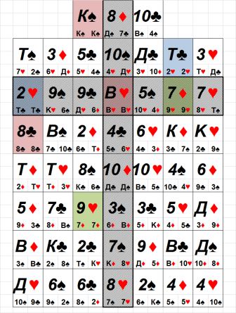 А теперь сложим порядковые номера карт Матрицы, составляющие вертикальную перекладину «Латинского Креста» - staticulum, и посмотрим, чем же в итоге стала Христианская Церковь. 8♥(8) + 7♠(46) + 3♠(42) + 10♦(36) + 4♣(17) + В♥(11) + 10♠(49) + 8♦(34) = 243 => 243 – 52*4 = 35 => 9♦(35) Мы получили число 35, соответствующее в Матрице карте Девятке Бубен, на определенном уровне символизирующей Всемирный Банк, структуру, управляющую мировыми денежными потоками. Богатство и Власть, сконцентрированные в руках Церкви, превратили ее из Духовной в Банковскую структуру. Если начать строить Пирамиду Чисел с 1 и до N, где первый уровень будут составлять числа 1, 2 и 3, то для 35-го уровня Пирамиды числа будут следующие: 631, 632…666. Последнее число 35-го уровня Пирамиды Чисел – 666. Вполне подходящее число для банковской структуры. Оно также может быть получено, как последовательная сумма чисел от 1 до 36: 1 + 2 + 3 + …+ 36 = 666. Поэтому в Матрице обе карты, связанные с этими номерами - 9♦(35) и 10♦(36) – соответственно, символизируют «Банк» и его «Обменник». Через 10♦(36) – «Обменник», в 9♦(35) – «Банк», стекаются крупные финансовые потоки, которые затем «Банк» может использовать по своему усмотрению. Если внимательно изучать Библию, то можно проследить, что указанное число 666, встречается как в Ветхом, так и в Новом Завете, и связано с двумя вещами: в первом случае с материально – денежными потоками, а во втором с «числом зверя» Апокалипсиса. В Ветхом Завете, применительно к материально – денежным потокам число 666 упоминается в связи с богатством царя Соломона, построившего Иудейский Иерусалимский Храм: «В золоте, которое приходило Соломону в каждый год, весу было шестьсот шестьдесят шесть талантов золотых» (3Цар. 10:14). А в Новом Завете, это же число имеет уже негативную окраску и связано с «числом зверя»: «Здесь мудрость. Кто имеет ум, тот сочти число зверя, ибо число это человеческое; число его шестьсот шестьдесят шесть» (Иоанн Богослов, Откр. 13:18, 15:2). Так что, с вертикальной перекладиной «Латинского Креста», кажется, все понятно. Можно переходить к горизонтальной перекладине. Горизонтальная перекладина «Латинского Креста» - трансформация Христианства в христианскую религию. Горизонтальная перекладина «Латинского Креста», или patibulum – «виселица», состоит из семи карт. Постараемся понять, из чего же была сделана эта «виселица», и начнем, слева – направо.