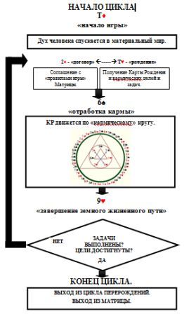ОПЕРАТОР ЦИКЛА С УСЛОВИЕМ - 666. Все вышесказанное, в условно-схематичном виде, можно представить в виде блок-схемы отрывка некой программы. Матрица это магическая программа, а все программы создаются по одному и тому же принципу… НАЧАЛОМ ЦИКЛА программы можно считать карту Т♦(27) - «начало игры», у которой есть еще две кармические карты: